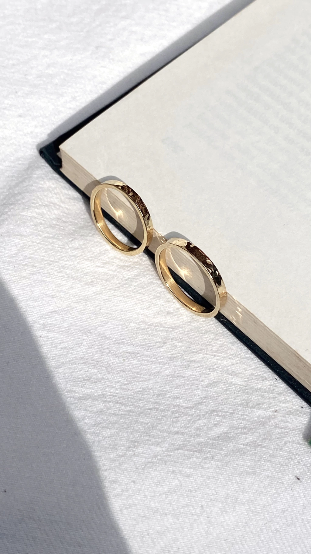 Par de alianças confeccionadas em ouro 10k maciço, textura de bolinhas e anatômica, para um conforto maior no uso diário.