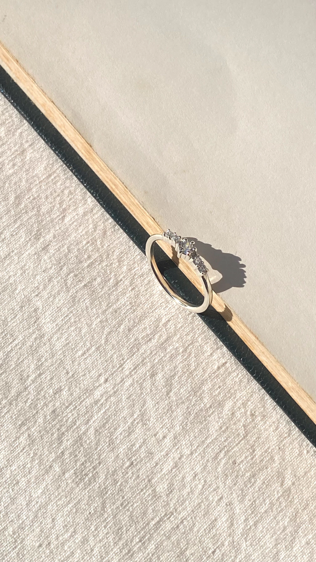 Anel confeccionado em prata 950, com zircônia, topázio incolor ou moissanita.