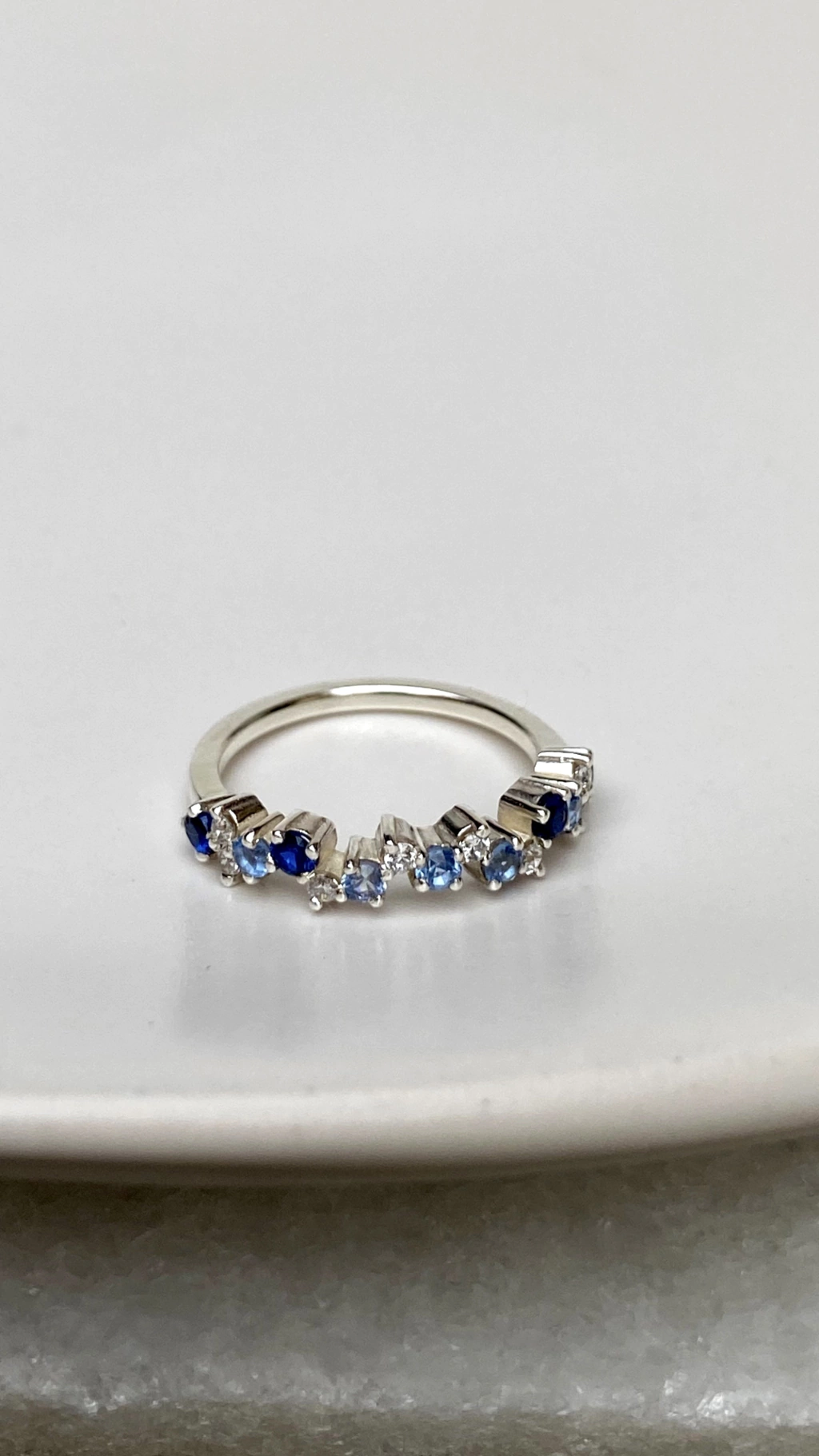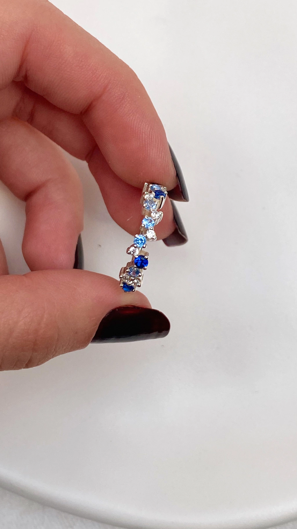 Anel confeccionado em prata 950, com zircônia branca, azul clara e azul escura.