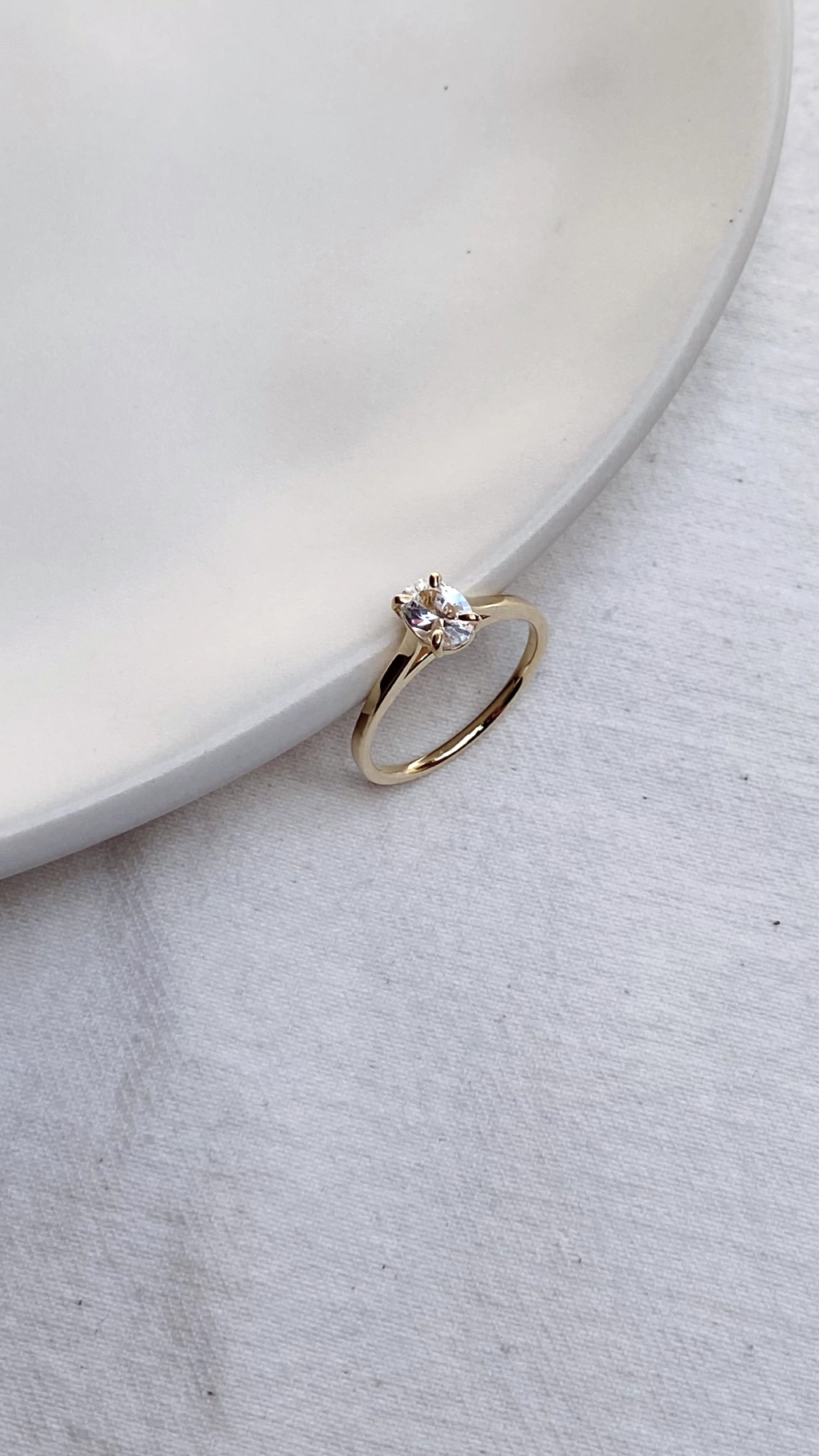 Anel confeccionado em ouro 10k, disponível com opções de pedras preciosas Topázio Incolor, Moissanita ou Zircônia. Diamante valor sob consulta.